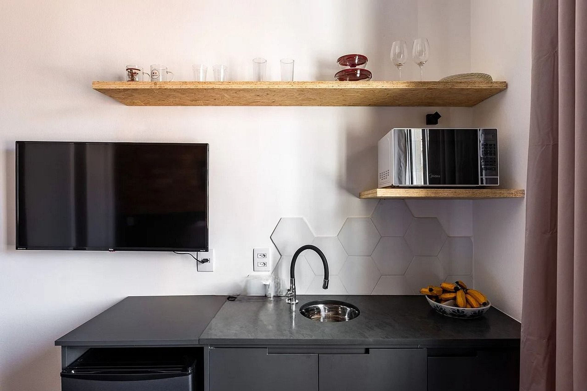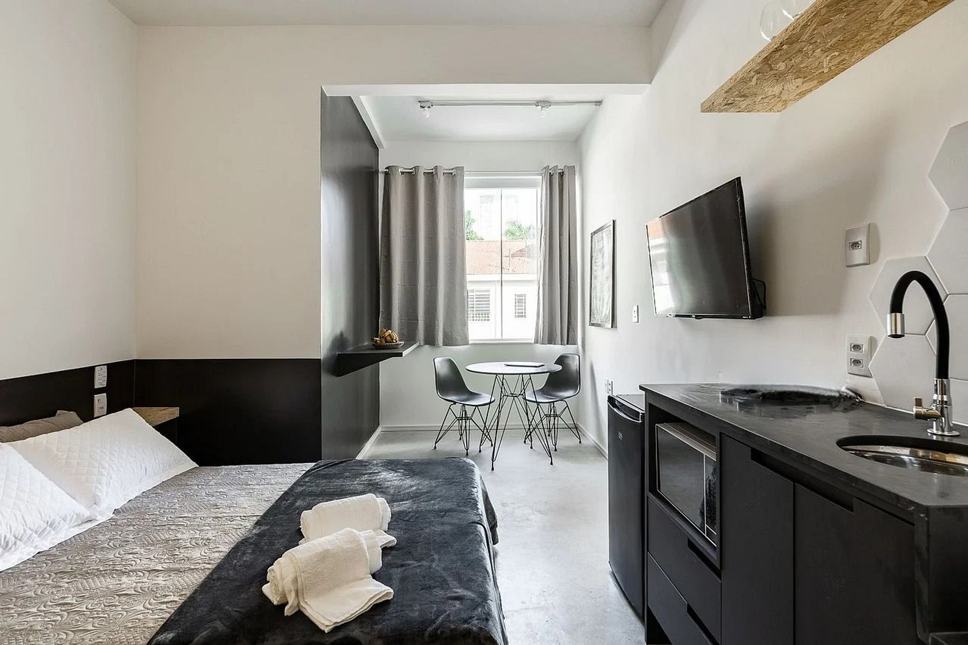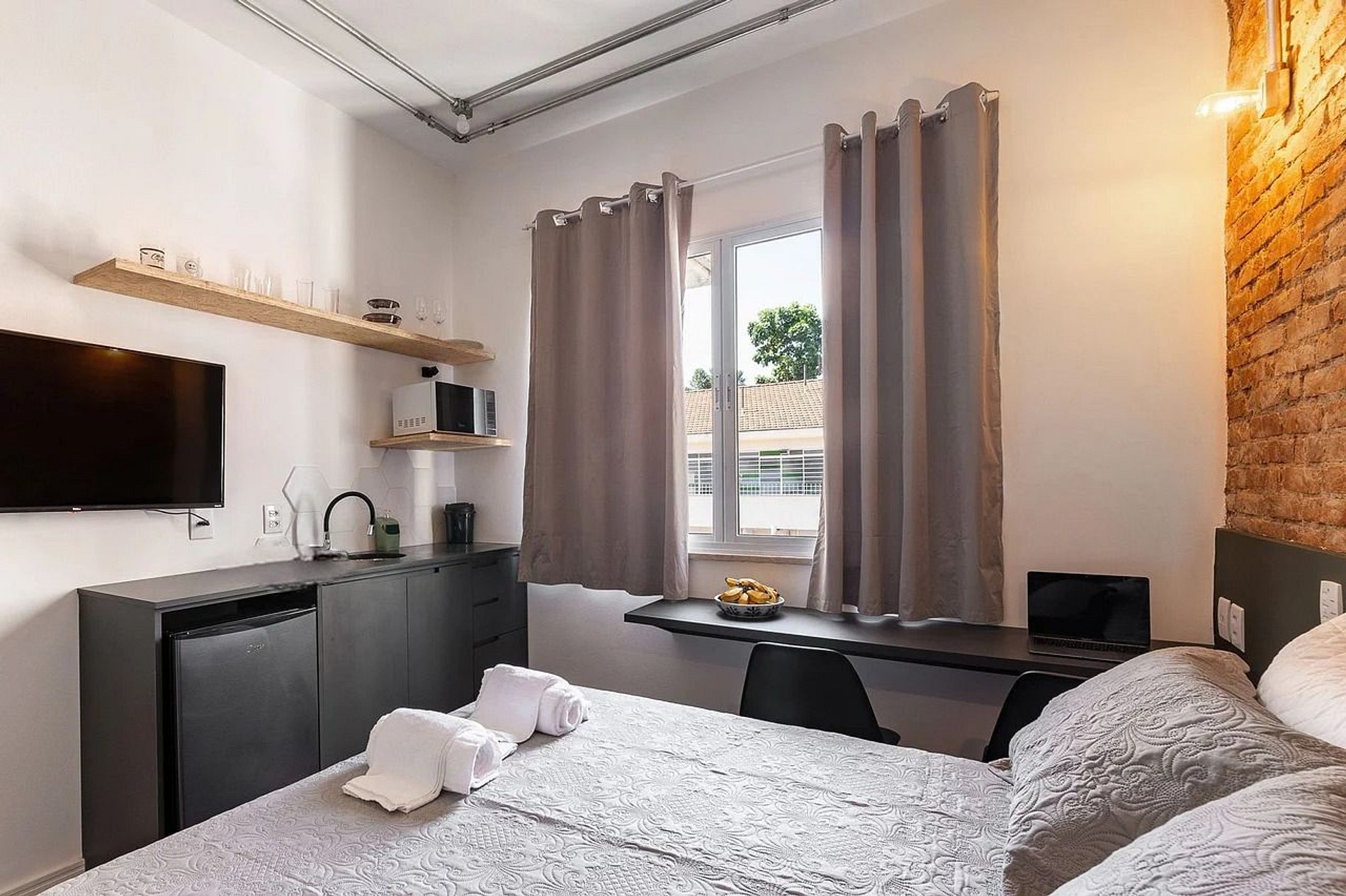 Nosso apartamento vem equipado com ventilador de teto, micro-ondas, frigobar, conexão com wifi. Roupas de cama e toalha de banho também incluída na reserva. Ideal para homeoffice.
