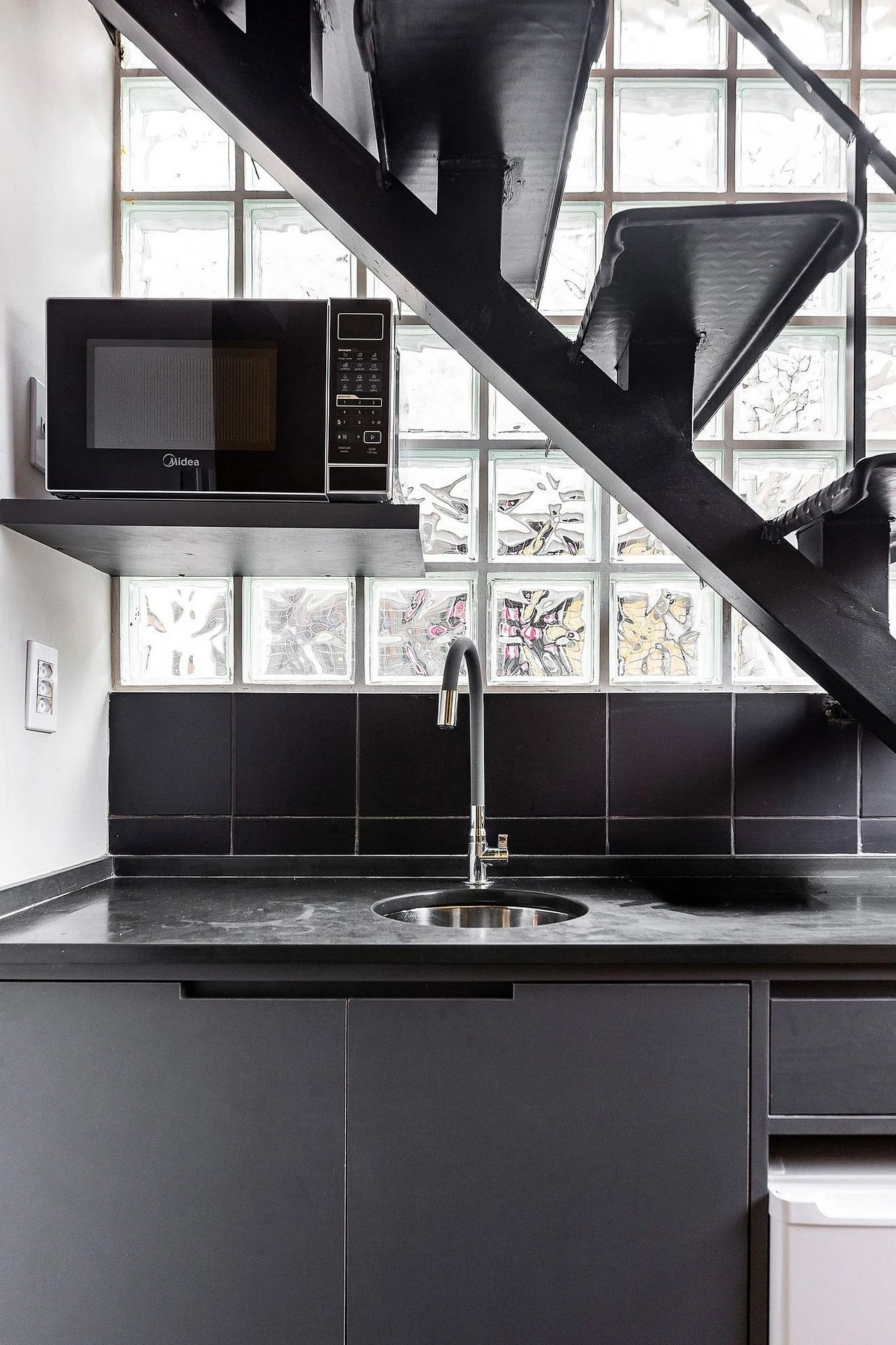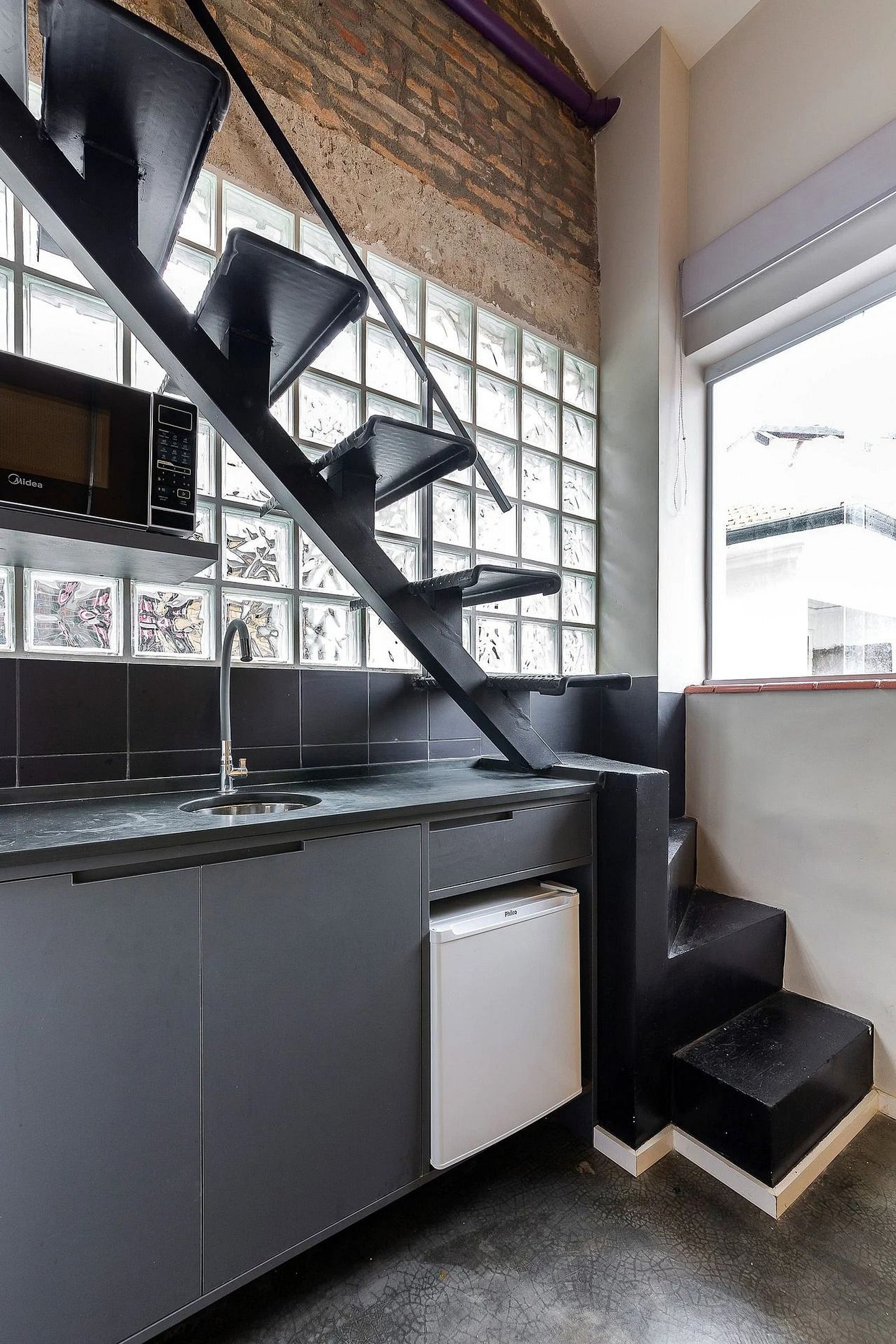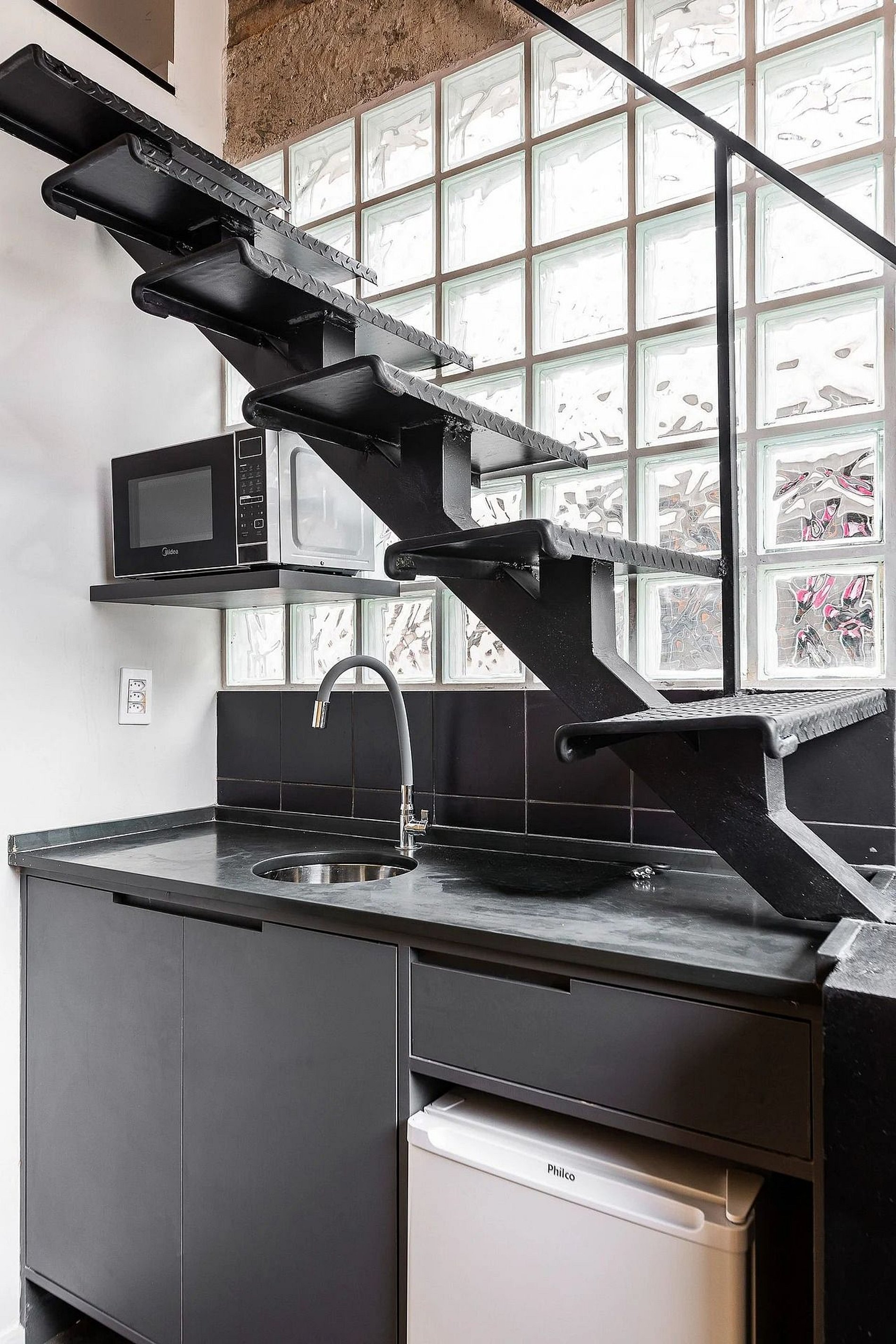O prédio não possui elevador e o studio se localiza no segundo andar.